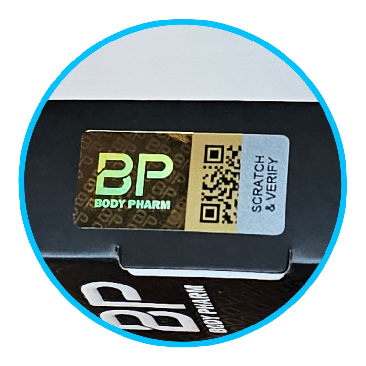 Body Pharm has implemented an authentication system whereby every product has gone through vigorous quality control and is signed off by receiving the final authentication label.